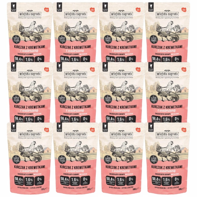 Wiejska Zagroda karma mokra dla kota Kurczak Krewetki z walerianą 100g