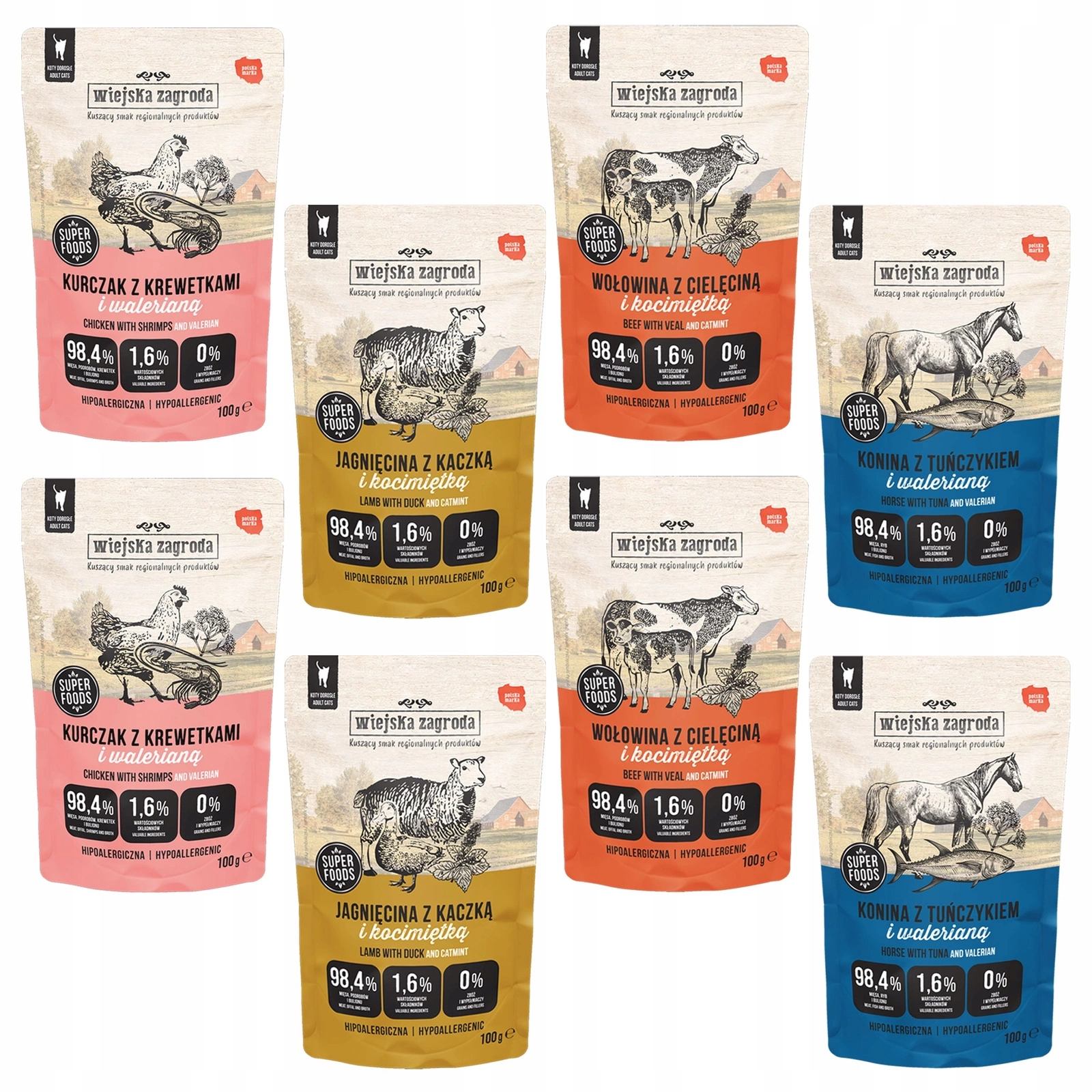 Wiejska Zagroda karma mokra dla kota Mix Smaków 8 x 100g bezzbożowa