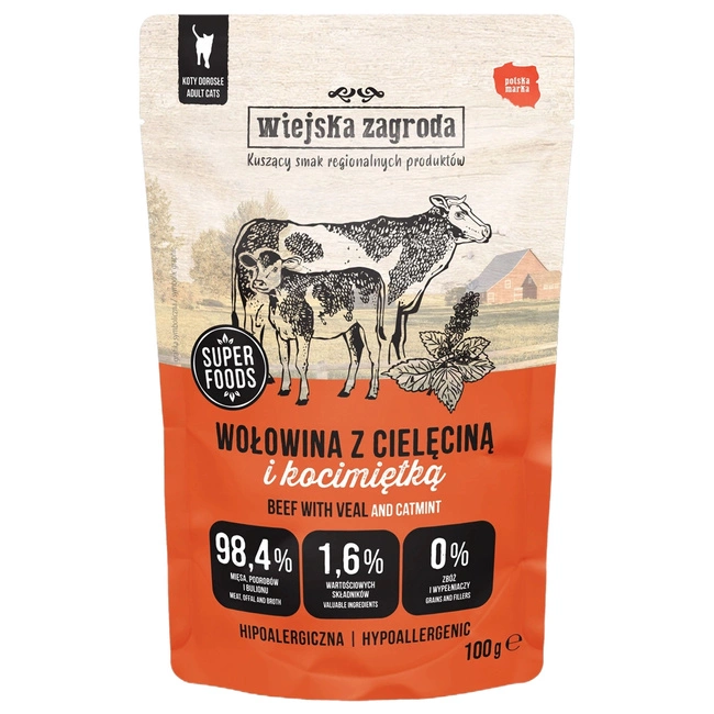 Wiejska Zagroda karma mokra dla kota Wołowina Cielęcina z kocimiętką 100g