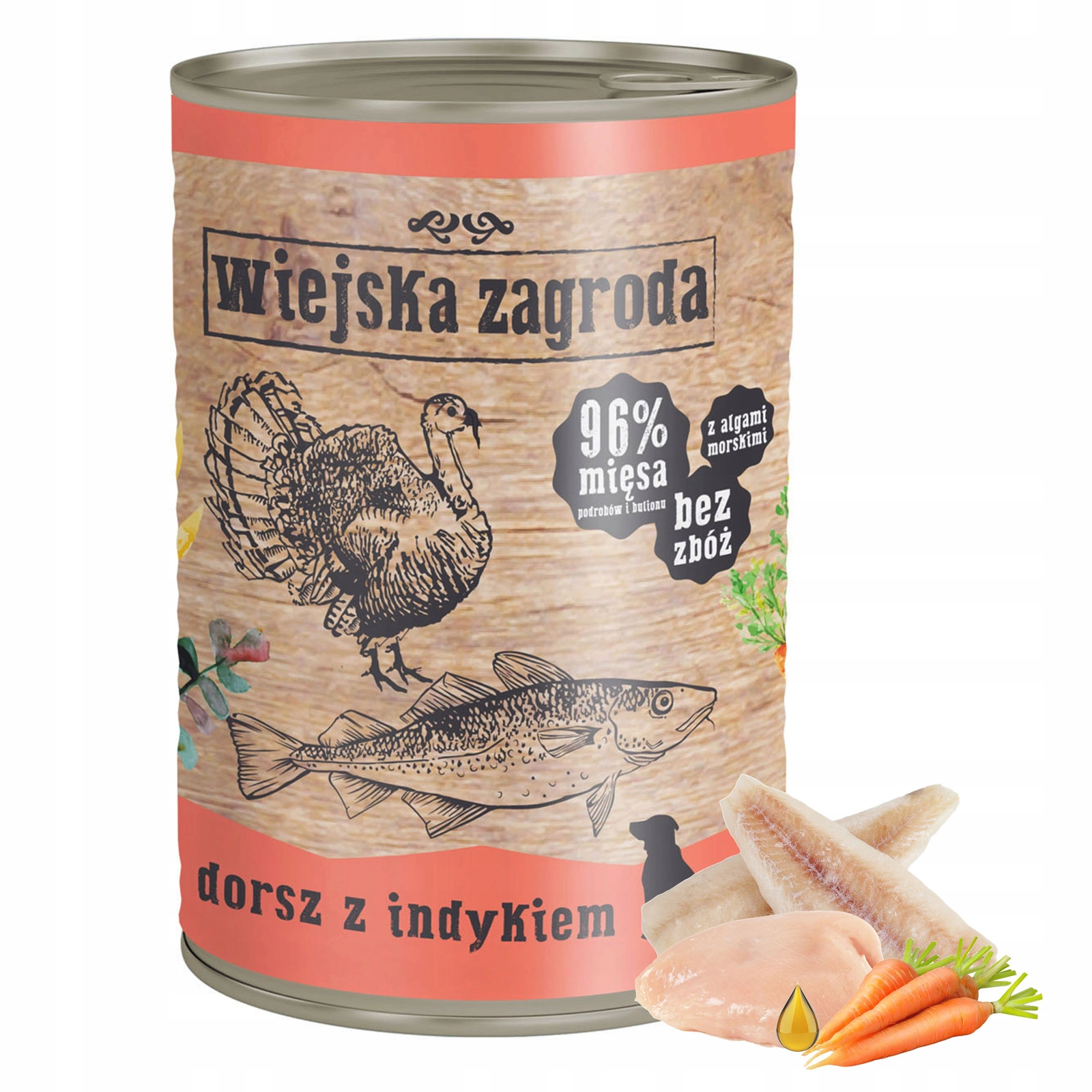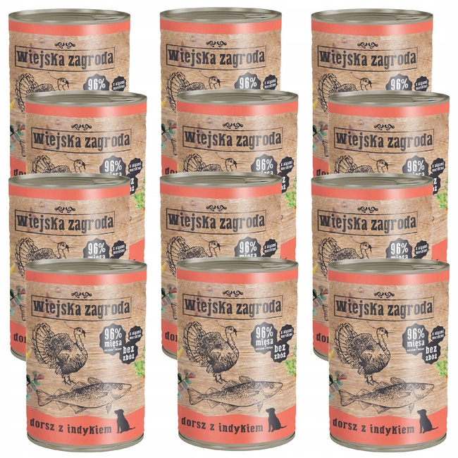 WIEJSKA ZAGRODA Karma mokra dla psa Dorsz Indyk 12 x 400g