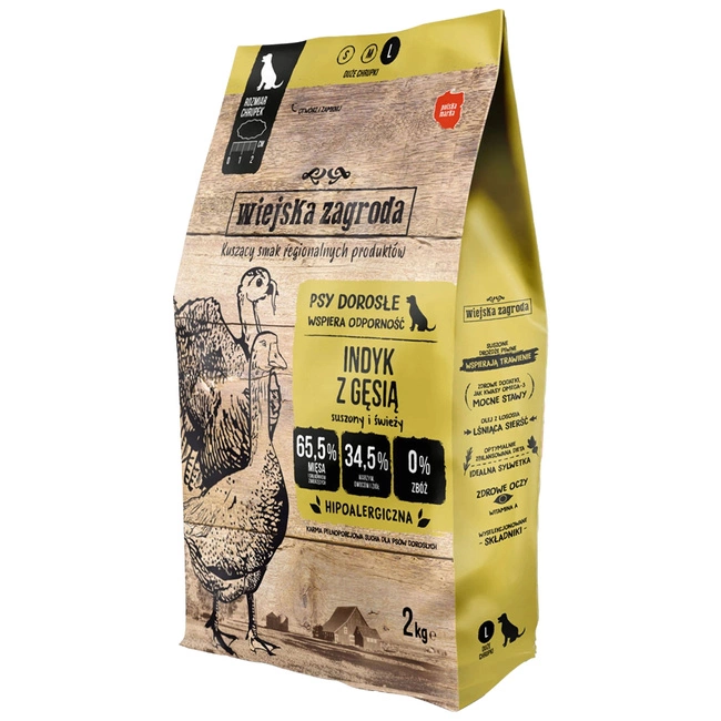 WIEJSKA ZAGRODA Karma sucha dla psa Indyk Gęś Chrupki L 2 kg