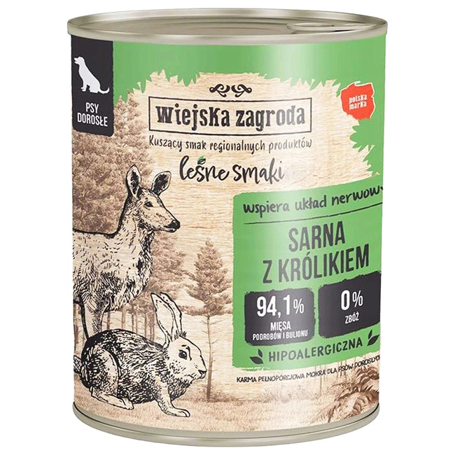 WIEJSKA ZAGRODA Leśne smaki Karma mokra dla psa Sarna Królik 800g Bezzbożowa