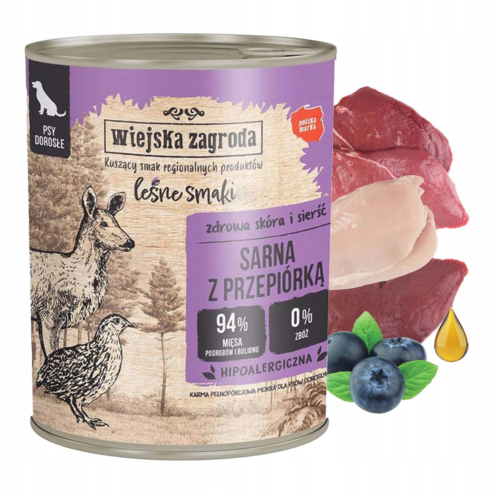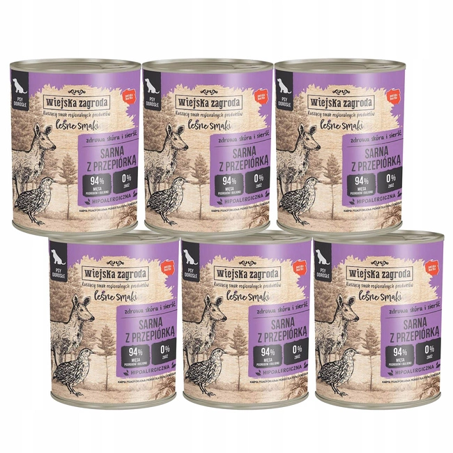 WIEJSKA ZAGRODA Leśne smaki Karma mokra dla psa Sarna Przepiórka 6 x 800g