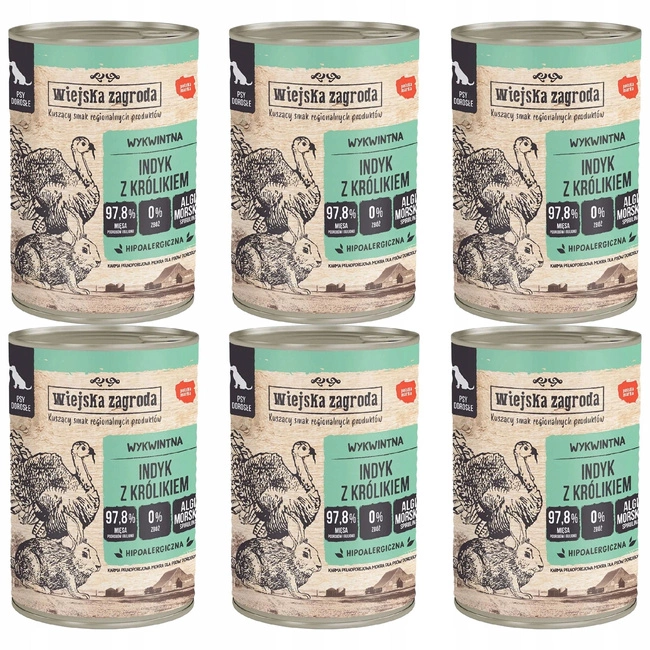 WIEJSKA ZAGRODA Mokra karma dla psa Indyk Królik 6 x 400g bezzbożowa