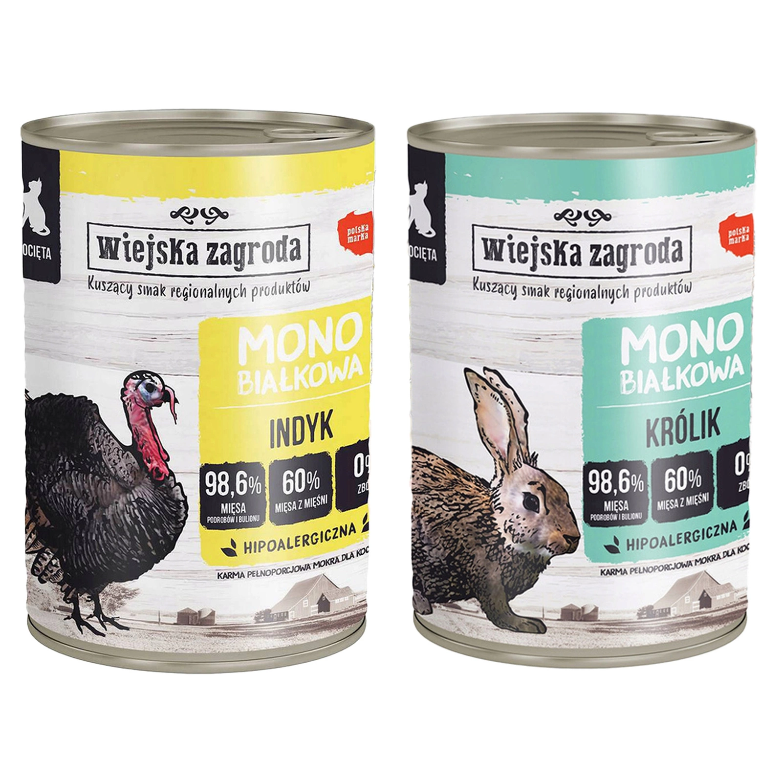 • Karma mokra Wiejska Zagroda MONO dla kociąt bez zbóż puszka mix smaków