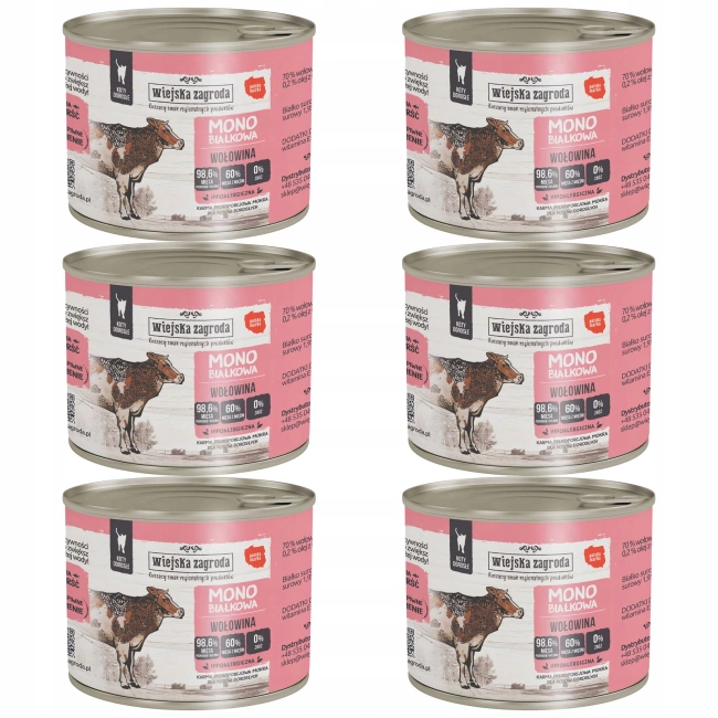 WIEJSKA ZAGRODA MONO Karma mokra dla kota 6 x 200g Wołowina
