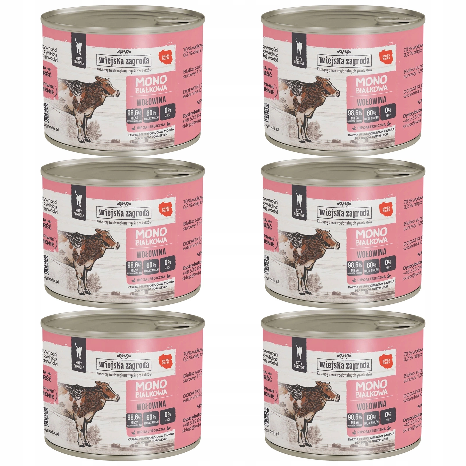 WIEJSKA ZAGRODA MONO Karma kota Wołowina 6 x 200g