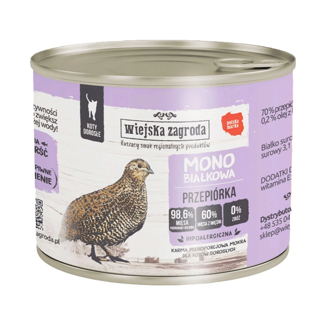 WIEJSKA ZAGRODA MONO Karma kota Przepiórka 200g
