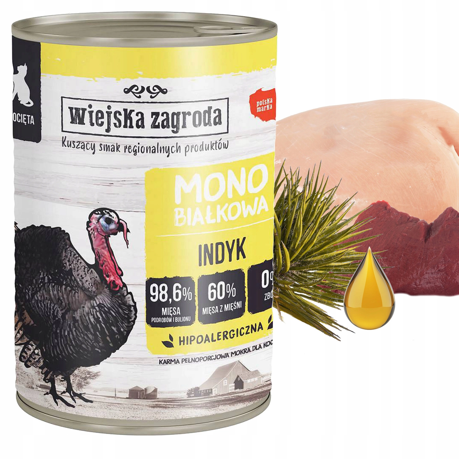 - Karma mokra Wiejska Zagroda dla kociąt monobiałkowa bez zbóż puszka indyk