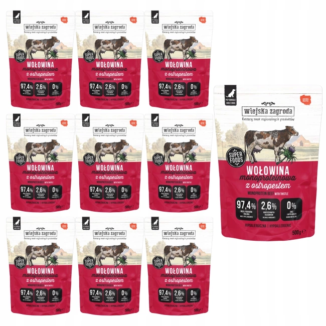 WIEJSKA ZAGRODA Mono mokra karma dla psa Wołowina z ostropestem 500g