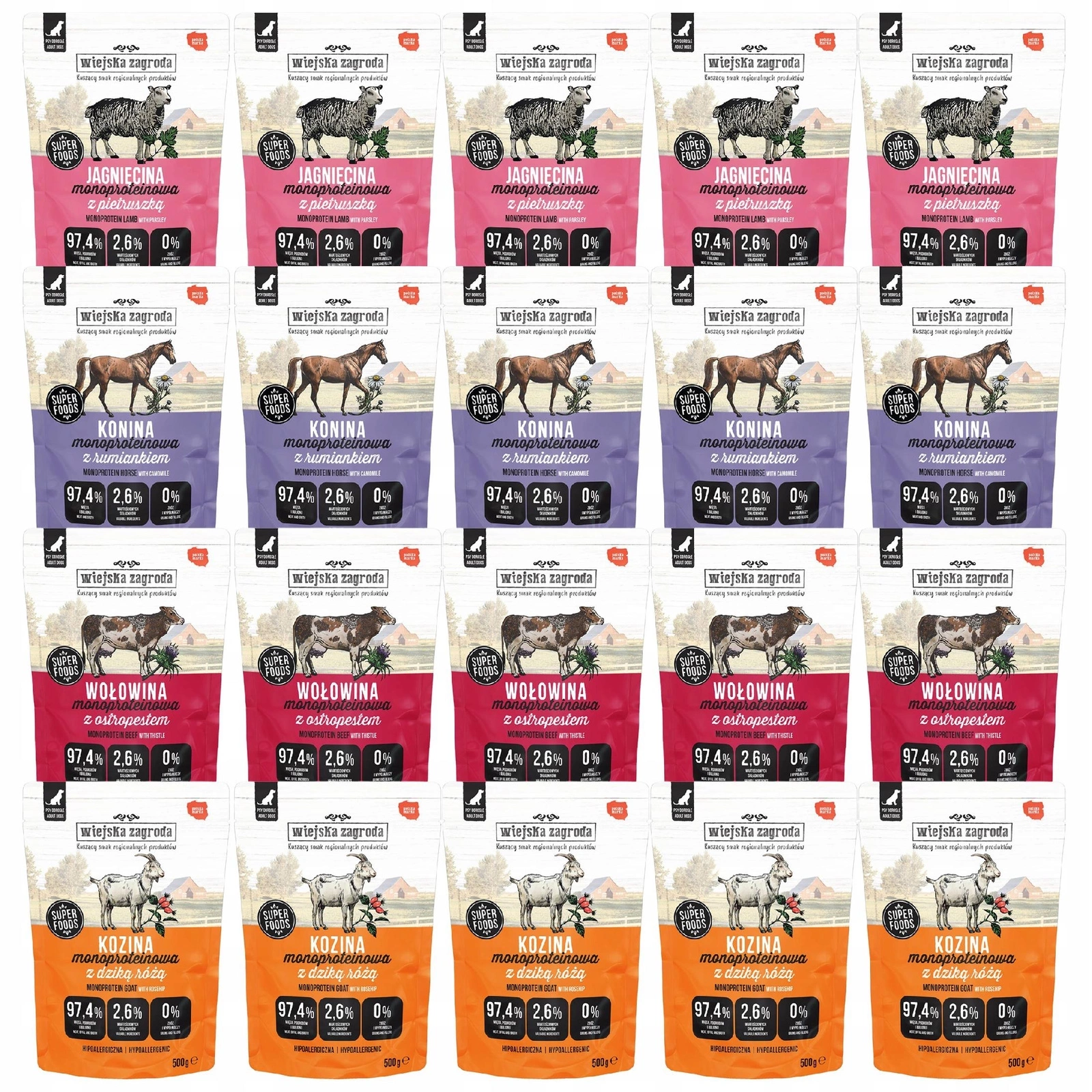 WIEJSKA ZAGRODA Monobiałkowa mokra karma dla psa mix smaków 20 x 500g