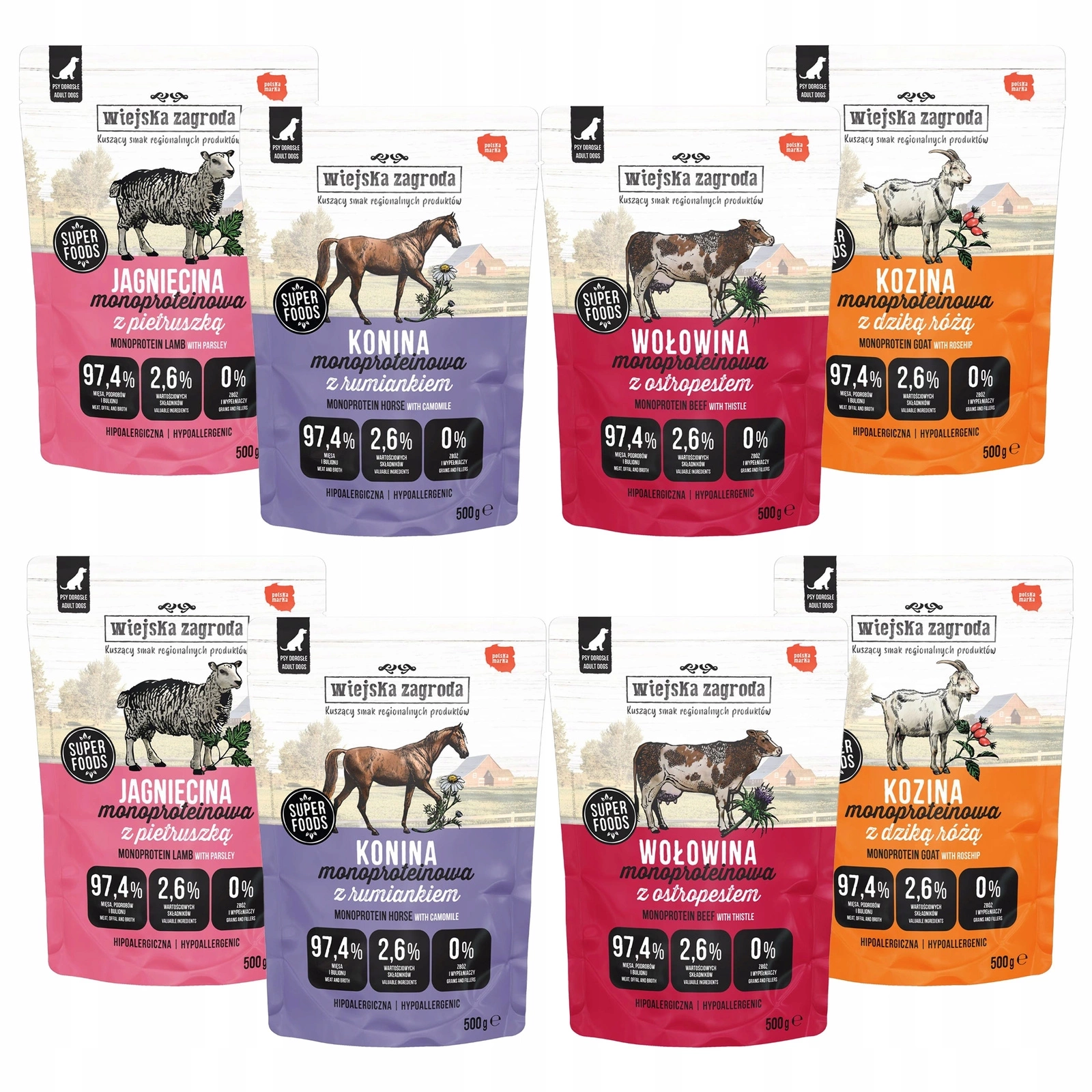 WIEJSKA ZAGRODA Monobiałkowa mokra karma dla psa mix smaków 8 x 500g