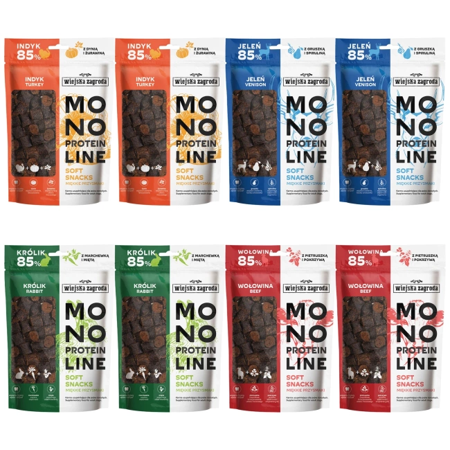 WIEJSKA ZAGRODA MONOPROTEIN miękki smakołyk przysmak dla psa mix 8 x 115g